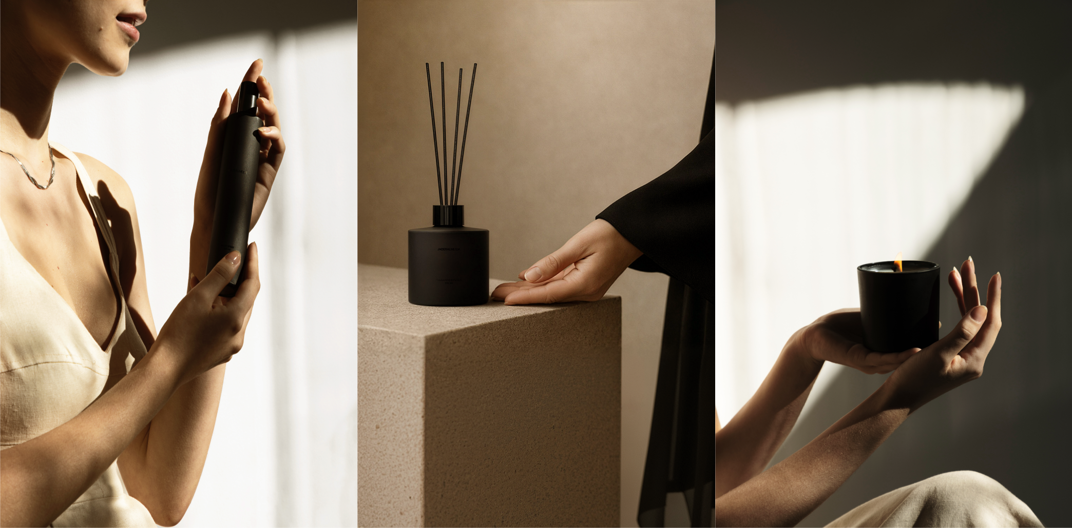 The Memory collection expands into new experiences, incorporating diffusers that deepen its relationship with the environment and the atmosphere of spaces. Light and scent as constructive elements of the same space.