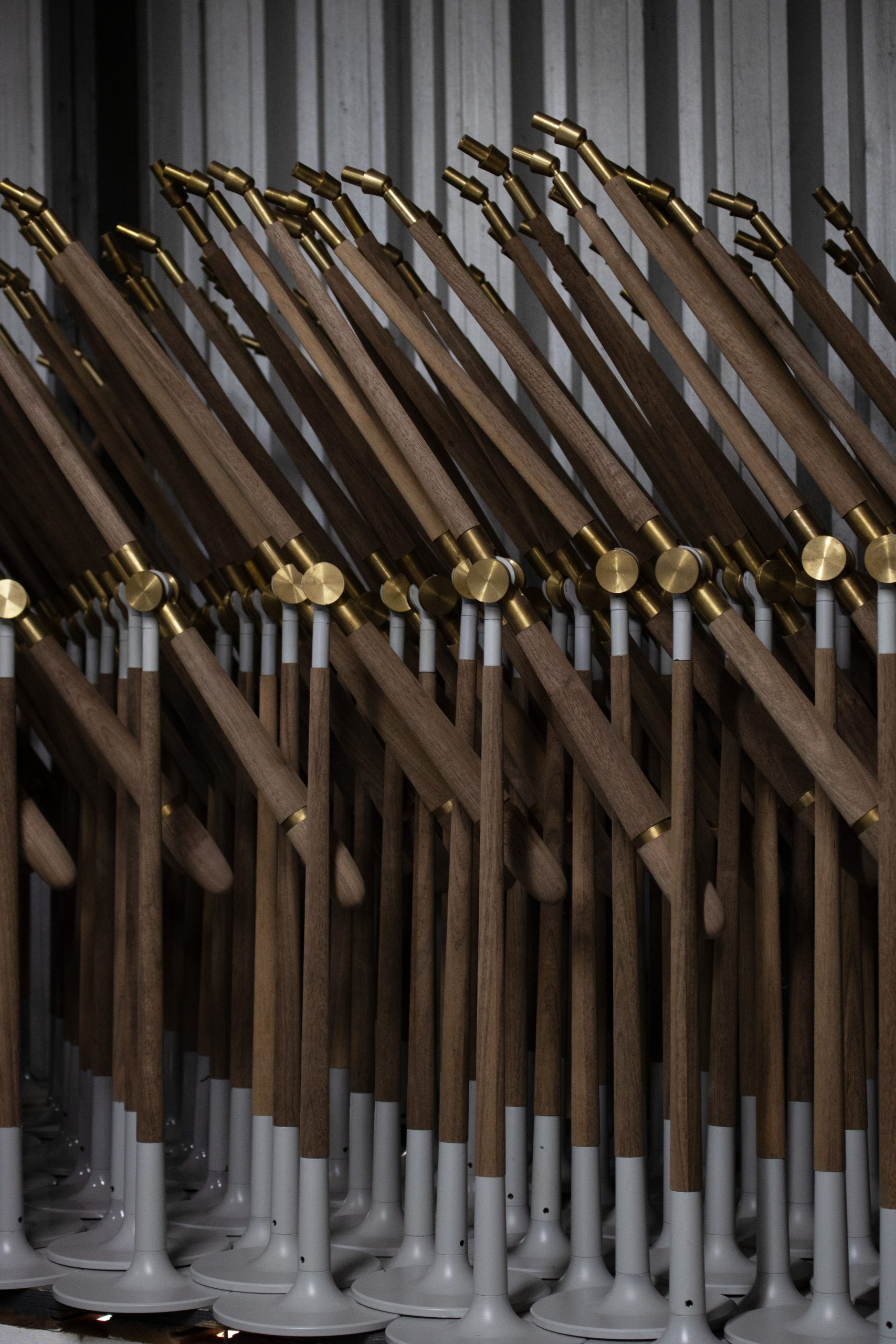 Cada nova tipologia manteve o que há de mais essencial na coleção: a relação entre luz, forma e materialidade. A madeira, o metal e outros materiais trabalhados com precisão, em processos técnicos e manuais que transformam o desenho em memória.