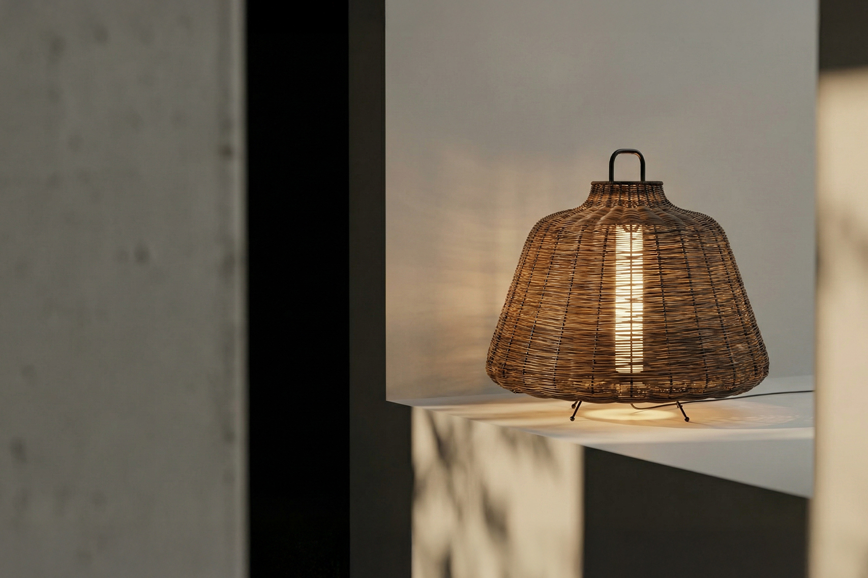 The Hero places texture at the forefront: a shade in paper thread and synthetic cord offers a visual lightness that contrasts with its lacquered structure. Suitable for outdoor areas as well, it is a proposal that unites craftsmanship and modernity with personality.