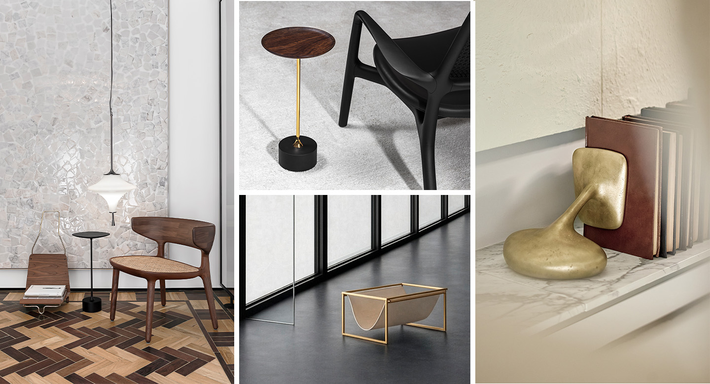 Bookends and magazine racks, in turn, organize the collection with precision and discretion, enhancing what is essential without interfering with what guides the space. In addition, they contribute to a cleaner and more balanced visual reading, reinforcing a sense of order.