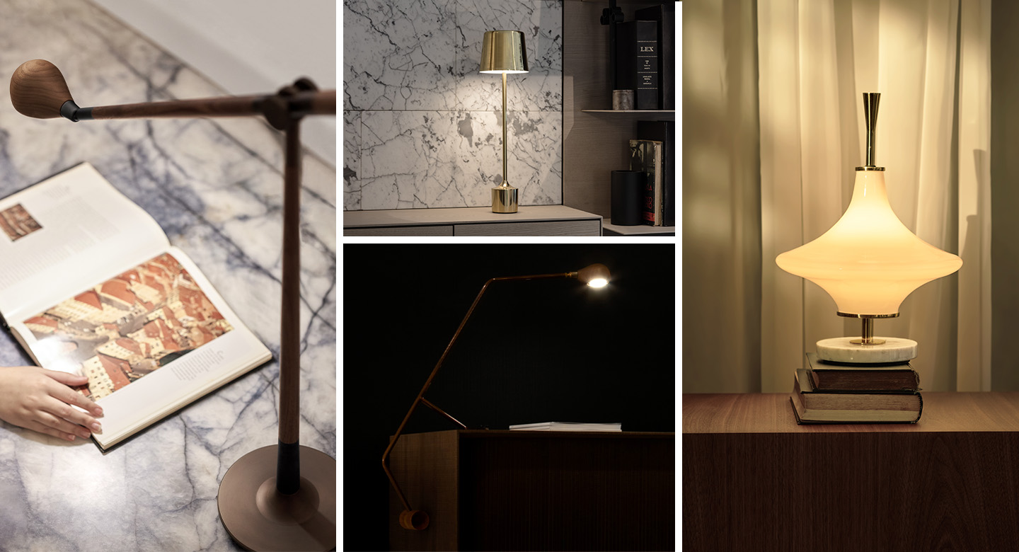 Lighting defines, above all, the character of a space. In this context, a well-positioned table lamp precisely establishes the ideal balance between comfort and concentration.